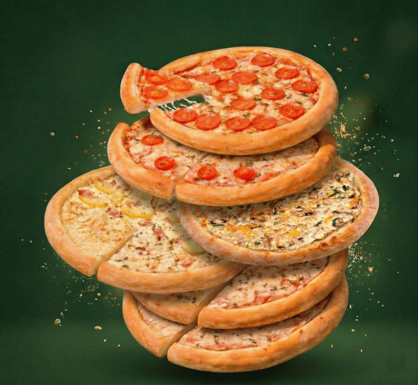 Пицца Пепперони-2 шт, пицца Квадро формаджи _ 2 шт, пицца Жульен - 2шт, пицца Франческо - 2 шт, пицца Ветчина грибы - 2 шт, пицца Мясная - 2 шт.